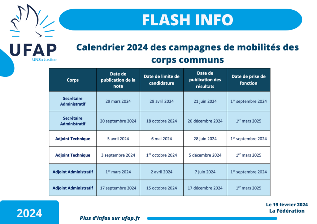 Veuillez trouver ci-dessous un communiqué de l’UFAP concernant le Calendrier 2024 des campagnes de mobilités des corps communs.