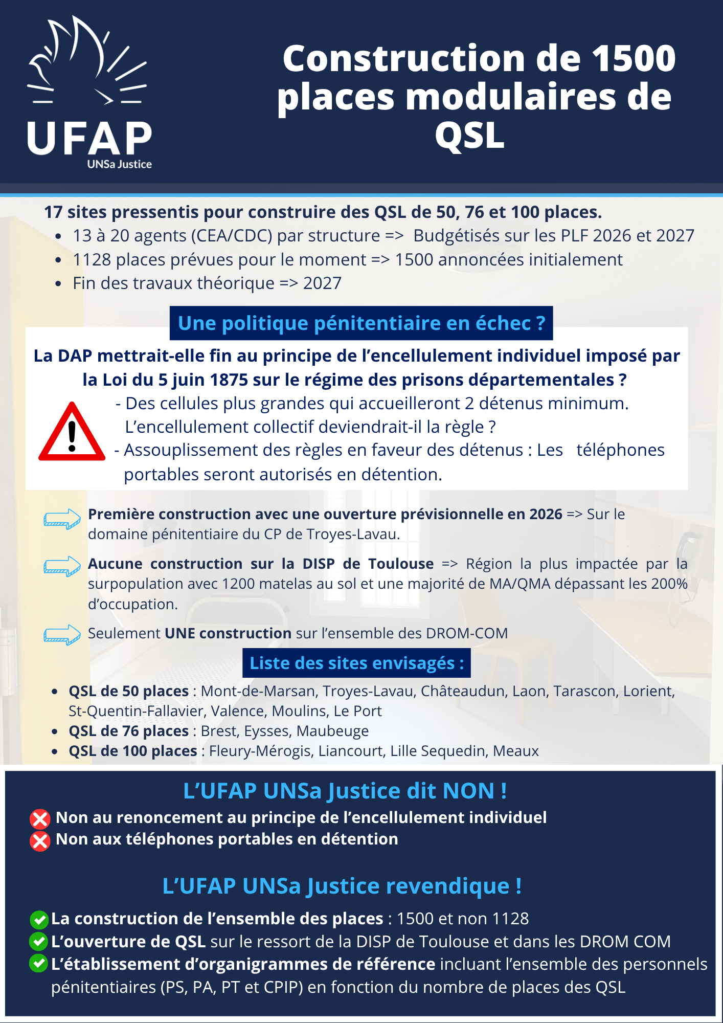 - QSL de 76 places : Brest, Eysses, Maubeuge