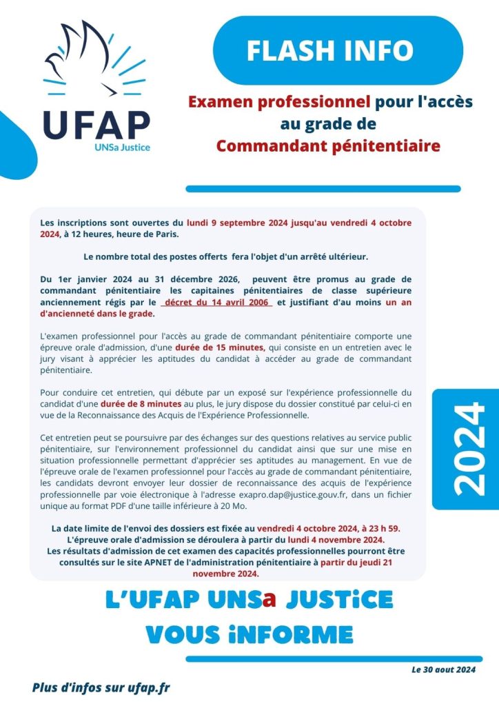 Examen professionnel pour l’accès au grade de Commandant pénitentiaire