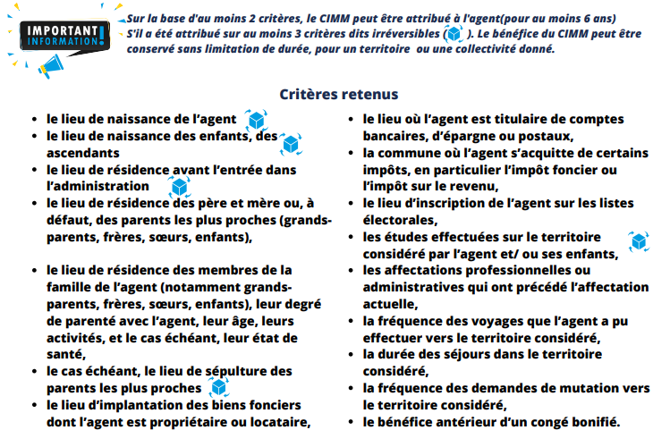 non exhaustifs. les critères CIMM serviront également pour l’attribution de la priorité légale de mutation