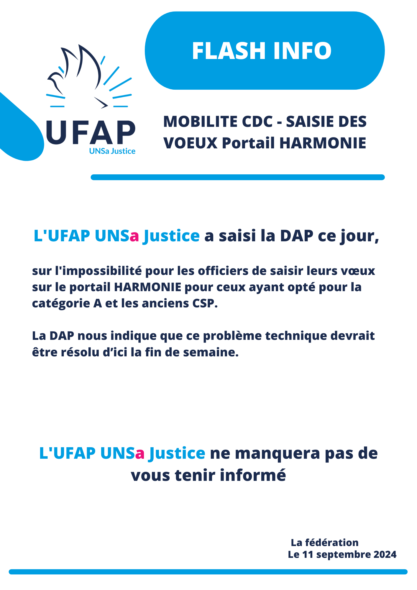 L’UFAP UNSa Justice ne manquera pas de vous tenir informé