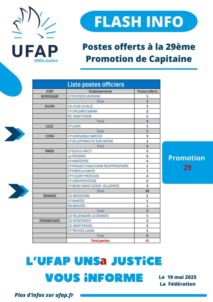 Flash Info : Postes offerts à la 29ème Promotion de Capitaine