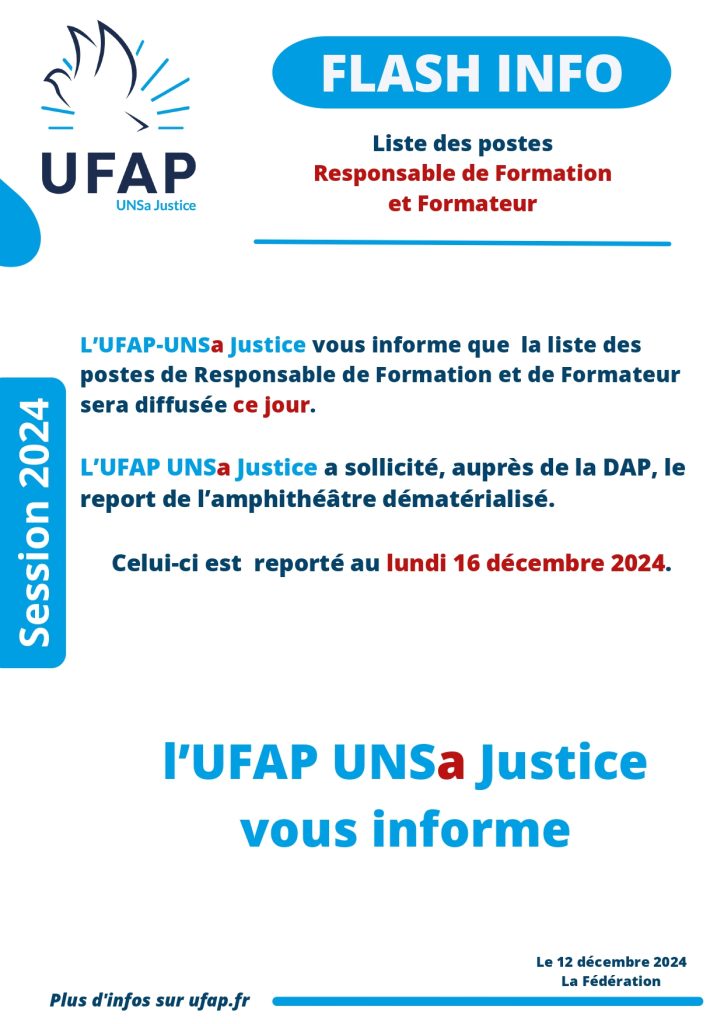 Flash info concernant la liste des postes de Responsable de Formation et Formateur et le report de l’amphithéatre.
