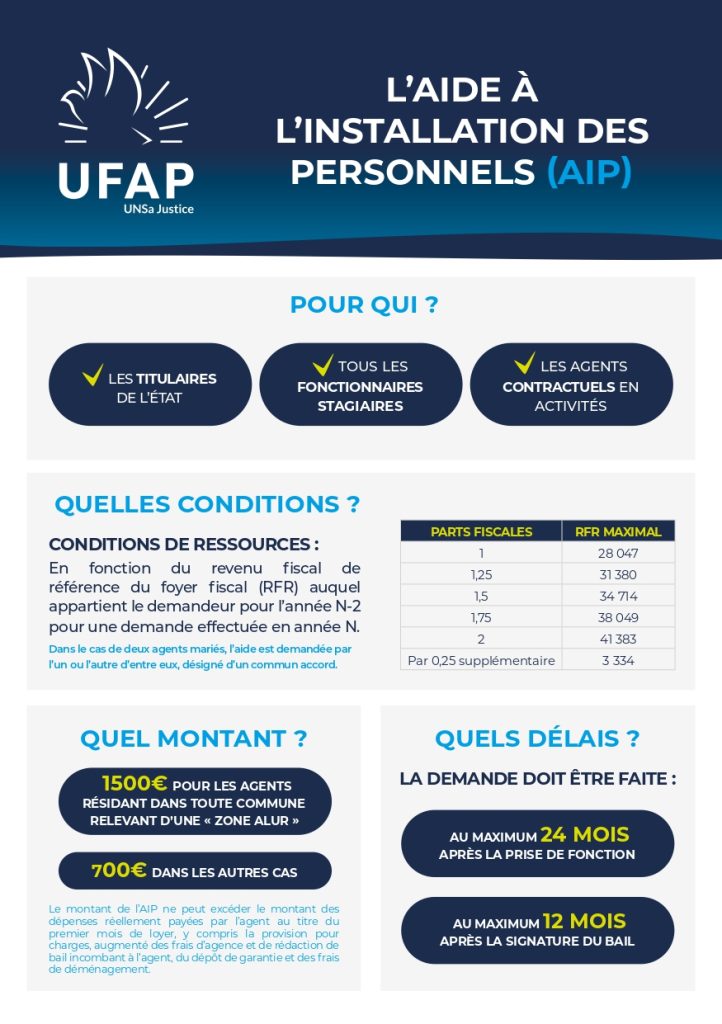 Flyer de l’UFAP UNSa Justice concernant l’Aide à l’Installation des Personnels (AIP).