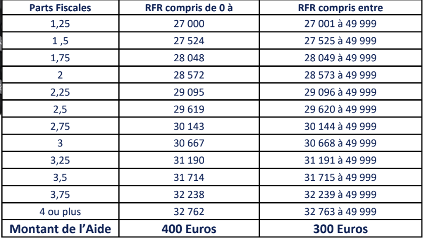 Avoir un Revenu Fiscal de Référence (RFR) inférieur à 50 000 Euros (l’aide est majorée pour les RFR < à 27 000 Euros)
