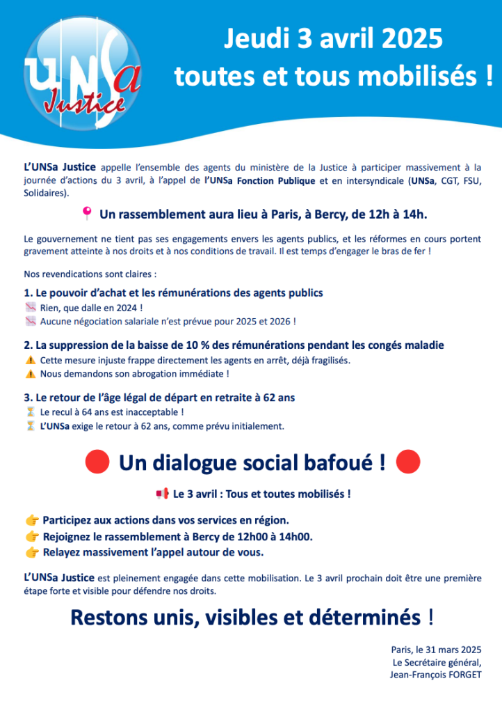 Jeudi 3 avril 2025: toutes et tous mobilisés !