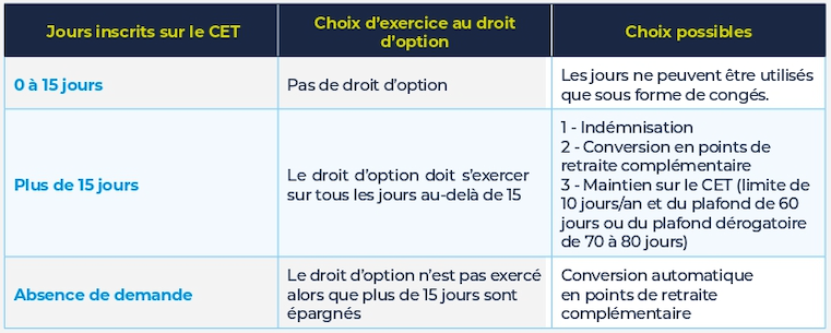 Les jours épargnés au-delà de 60 jours peuvent être maintenus sur le compte épargne temps ou être utilisés les années suivantes.
