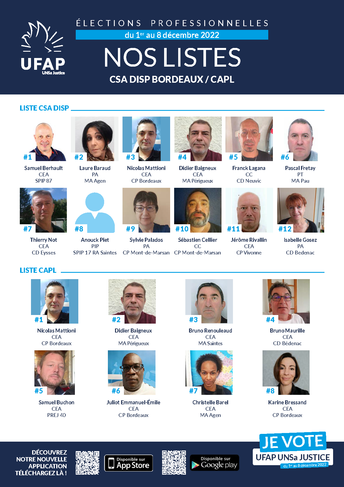 Listes Elections UFAP UNSA Justice