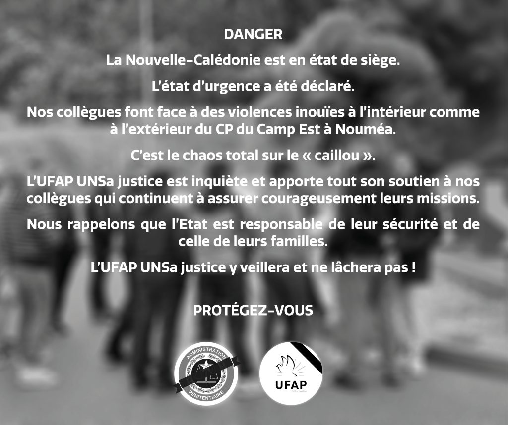 message de soutien aux personnels de la Nouvelle-Calédonie.