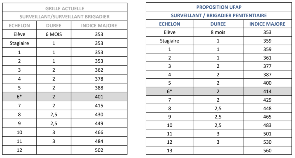 Pour redonner du dynamisme et des perspectives à ces grades, l’UFAP UNSa Justice revendique depuis 2022 une fusion des grilles 1er Svt/Major, avec un indice terminal minimal à 610 points.