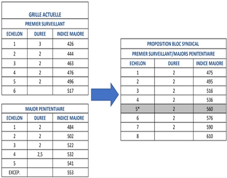 Non seulement la fusion de grades proposée par l’UFAP UNSa Justice, aurait épargné toutes manigances de promotion clientéliste et aurait permis à tous les gradés d’atteindre l’indice sommital du grade de Major sans examen pro (RAEP) et tableaux d’avancement.