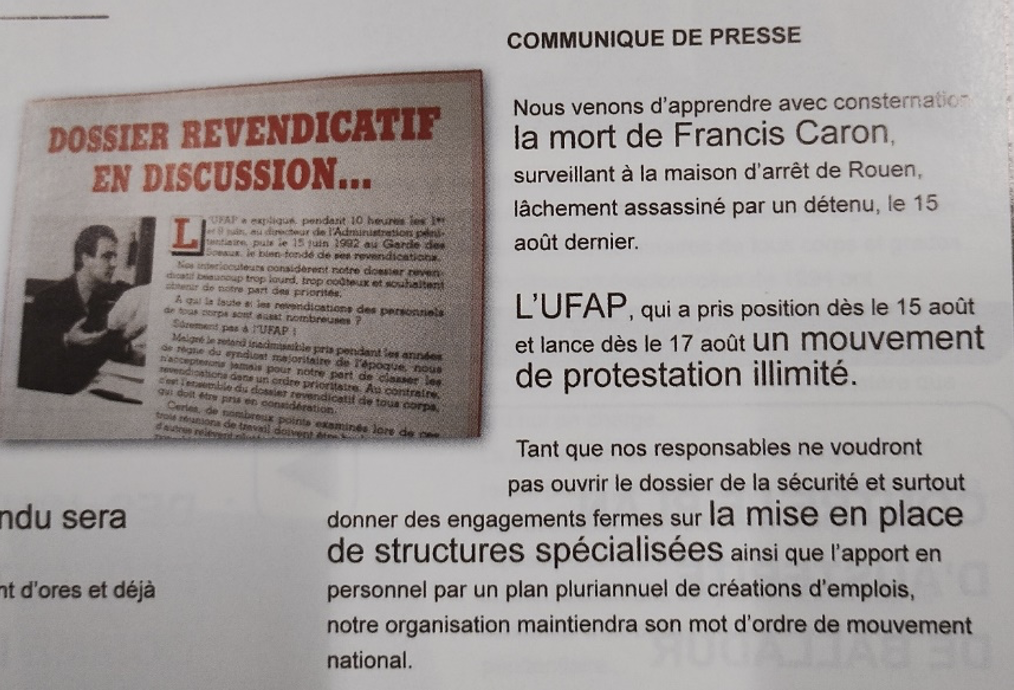 Créer une polémique alors que des collègues et leurs proches sont menacés et que l’un d’eux a sa tête mis à prix… C’est vraiment pitoyable ! Pour l’UFAP UNSa Justice, le rôle d’une organisation syndicale est avant tout de défendre la sécurité des personnels, tant à l’intérieur qu’à l’extérieur des structures et services ! Pour cela, il est nécessaire de ne pas caresser continuellement l’administration dans le sens du poil… Dédouaner la DAP de toute responsabilité dans le drame d’Incarville à la suite du rapport de l’IGJ est un bel exemple de l’entente cordiale existant entre la DAP et nos éternels détracteurs.